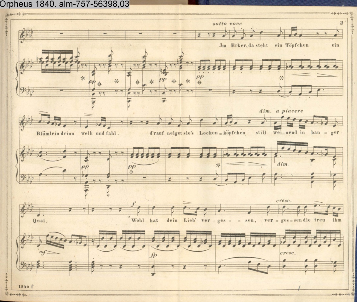 Vertonung des Gedichts »Thränenfrucht« von Th. Herzenskron