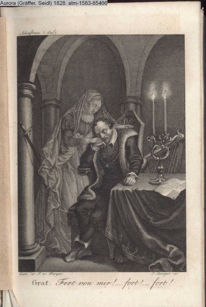 Bildliche Darstellungen zu dramatischen Werken vaterländischer Dichter (Sammlung INr 85464, Ob 7) Illustration zu »Die Ahnfrau« von Fr. Grillparzer