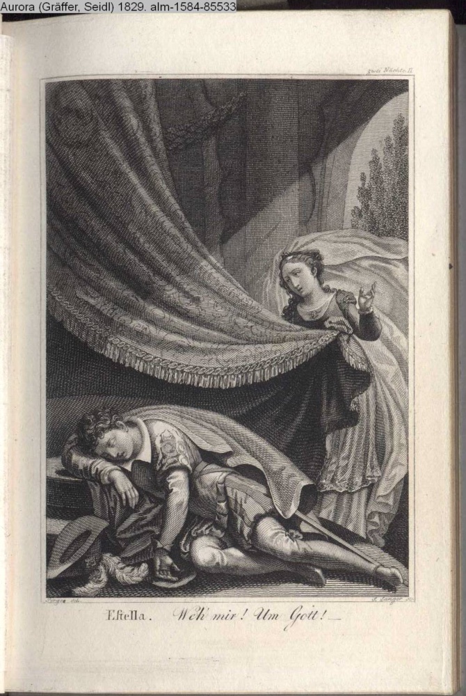 Bildliche Darstellungen zu dramatischen Werken vaterländischer Dichter. Zweite Lieferung (Sammlung INr 85530, Obj 6) Illustration zu »Zwei Nächte zu Valladolid« von J. C. v. Zedlitz