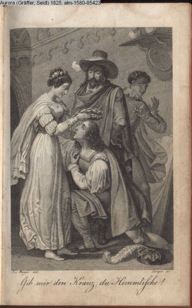 Bildliche Darstellungen zu dramatischen Werken vaterländischer Dichter. Zweite Lieferung (Sammlung INr 85530, Obj 7) Illustration zu »Zwei Nächte zu Valladolid« von J. C. v. Zedlitz
