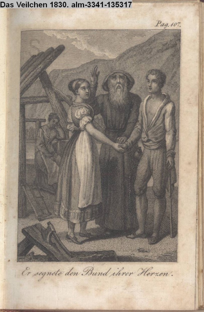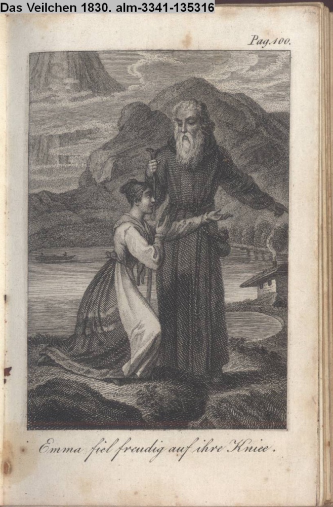 Graphik im Kalendarium September; an der Graphik Pag. 100; Illustration zu »Die beiden Fischerinnen« von Emil d. i. J. F. Trimmel, INr 135349, Obj 39