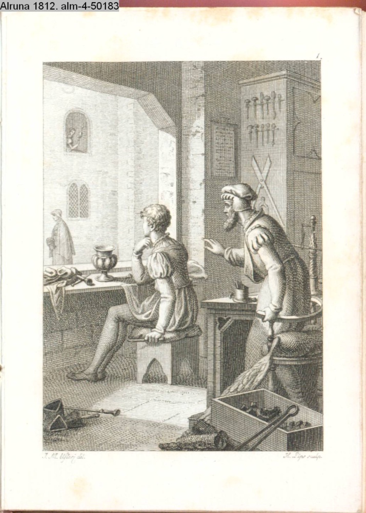 Illustration zu »Der Schatz durch den Schatz. Biographie Hans Breidbachs des Goldschmidts von Fryburg, aus dem XVI. Jahrhundert« von J. M. Usteri INr 50182, Obj 4