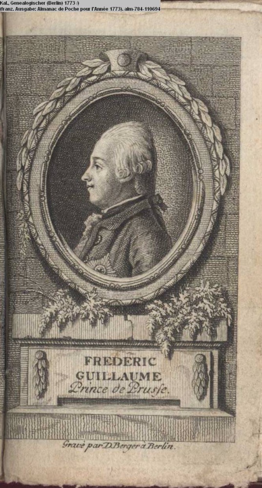 Kalender, Genealogischer (Berlin) 1773 (franz. Ausgabe: Almanac de Poche pour l’Année 1773)