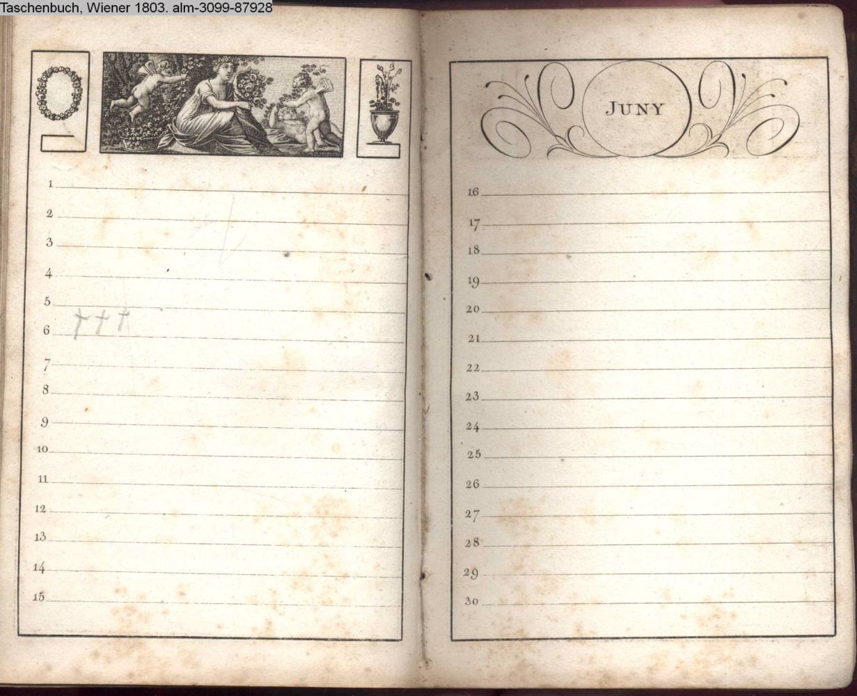 Graphik im Kalendarium Juni, nummeriert 6; s. Textbezug INr 128484, Obj 27
