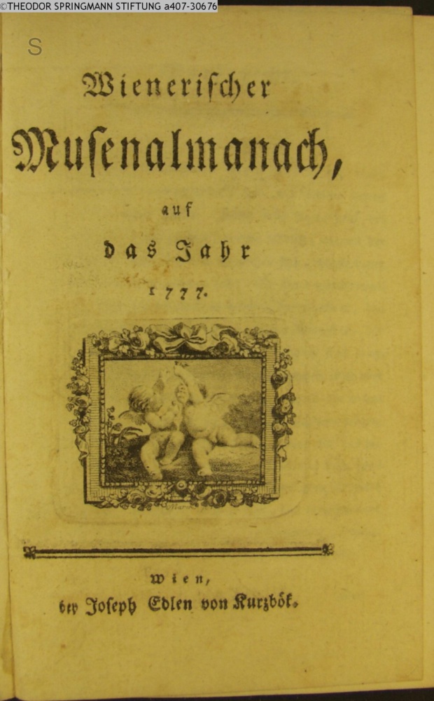Wienerischer / Musenalmanach, / auf / das Jahr / 1777. / Wien, / bey Joseph Edlen von Kurzbök