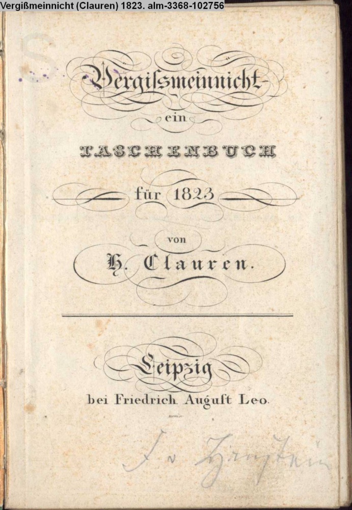Vergissmeinnicht / ein / TASCHENBUCH / für 1823 / von / H. Clauren. / Leipzig / bei Friedrich August Leo