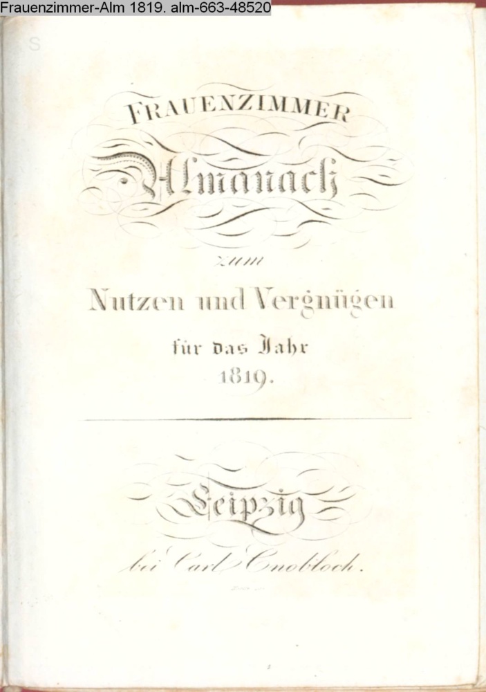 FRAUENZIMMER / Almanach / zum / Nutzen und Vergnügen / für das Jahr / 1819. / Leipzig / bei Carl Cnobloch