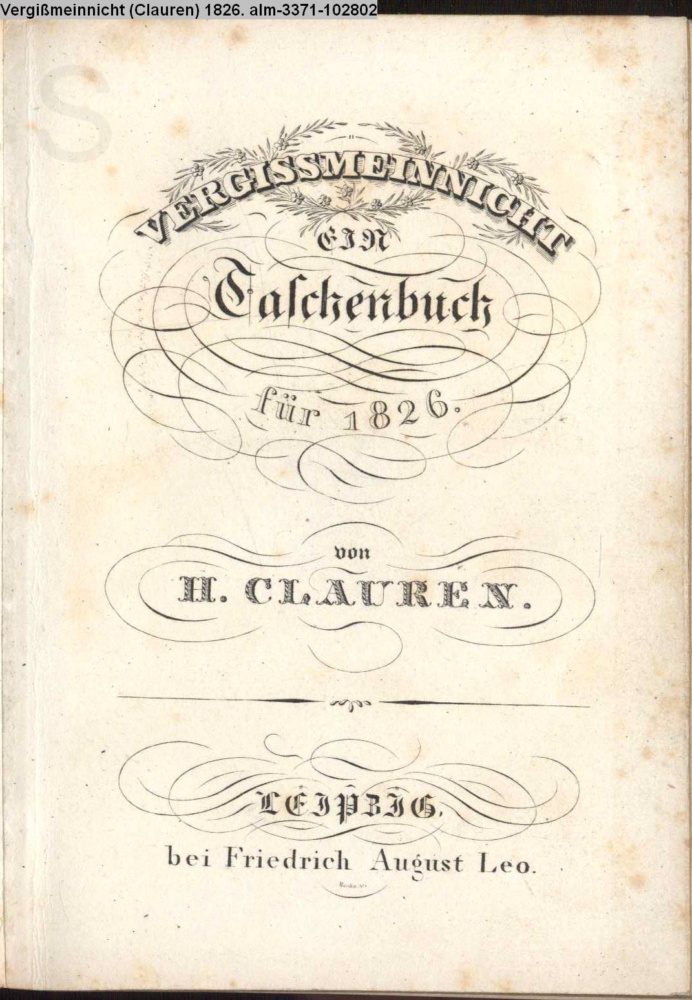 VERGISSMEINNICHT / EIN / Taschenbuch / für / 1826. / von / H. CLAUREN. / LEIPZIG, / bei Friedrich August Leo