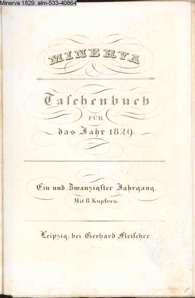 MINERVA. / Taschenbuch / Für / das Jahr 1829. / Ein und Zwanzigster Jahrgang. / Mit 8 Kupfern. / Leipzig, bei Gerhard Fleischer