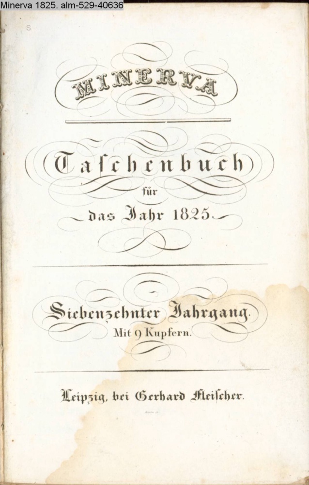 MINERVA. / Taschenbuch / für / das Jahr 1825. / Siebzehnter Jahrgang. / Mit 9 Kupfern. / Leipzig, bei Gerhard Fleischer