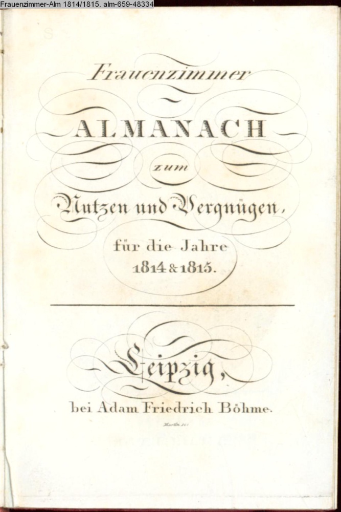 Frauenzimmer / ALMANACH / zum / Nutzen und Vergnügen. / für die Jahre / 1814 & 1815. / Leipzig / bey Adam Friedrich Böhme
