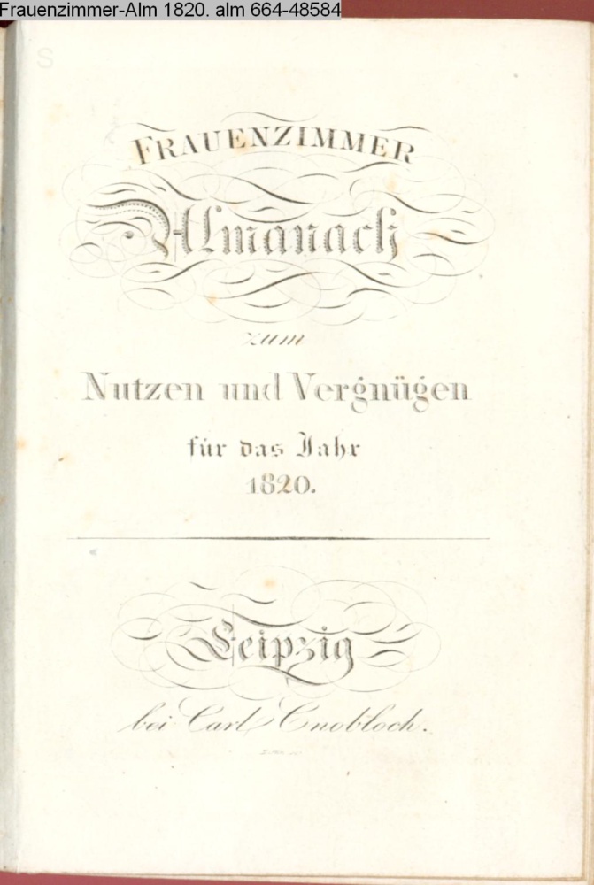 FRAUENZIMMER / Almanach / zum / Nutzen und Vergnügen / für das Jahr / 1820. / Leipzig / bei Carl Cnobloch