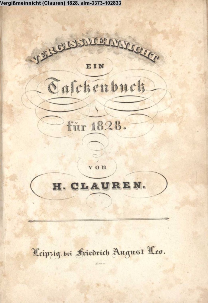 VERGISSMEINNICHT / EIN / Taschenbuch / für 1828. / von / H. CLAUREN. / Leipzig, bei Friedrich August Leo