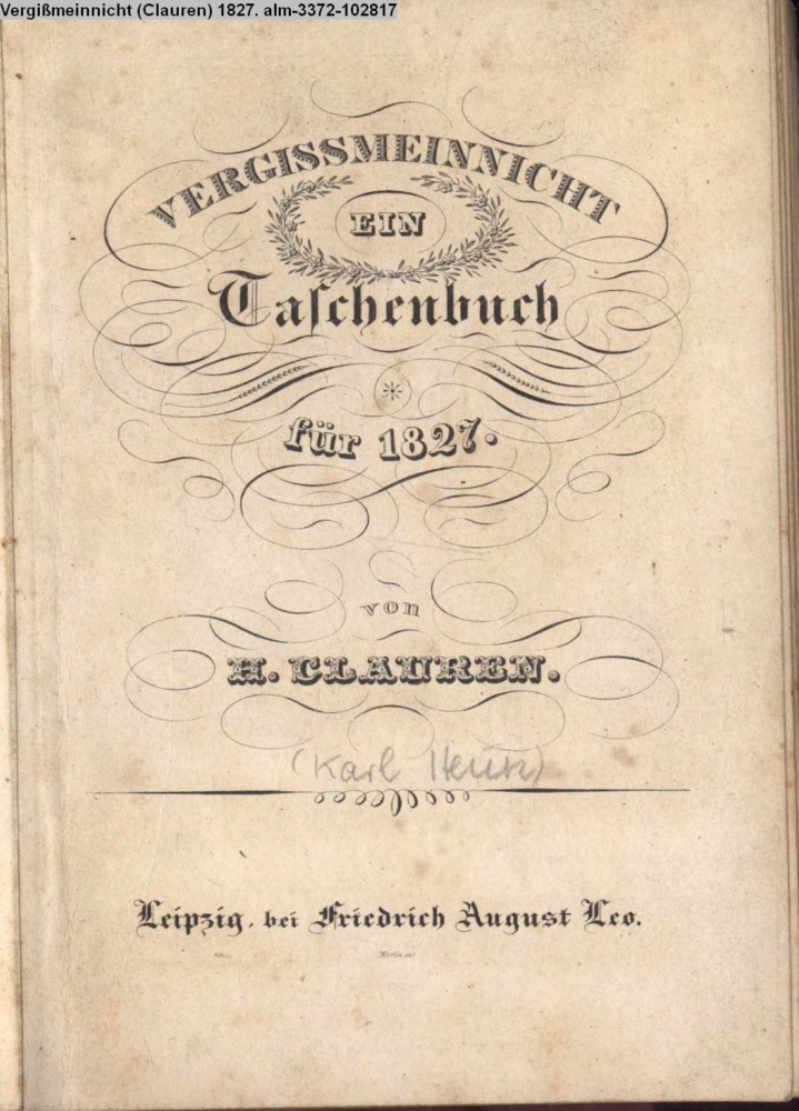 VERGISSMEINNICHT / EIN / Taschenbuch / für 1827. / von / H. CLAUREN. / Leipzig, bei Friedrich August Leo