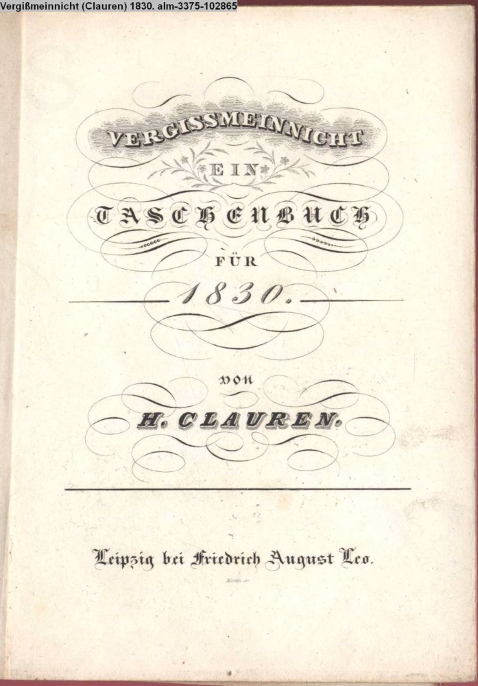 VERGISSMEINNICHT / EIN / TASCHENBUCH / FÜR / 1830. / von / H. CLAUREN. / Leipzig bei Friedrich August Leo