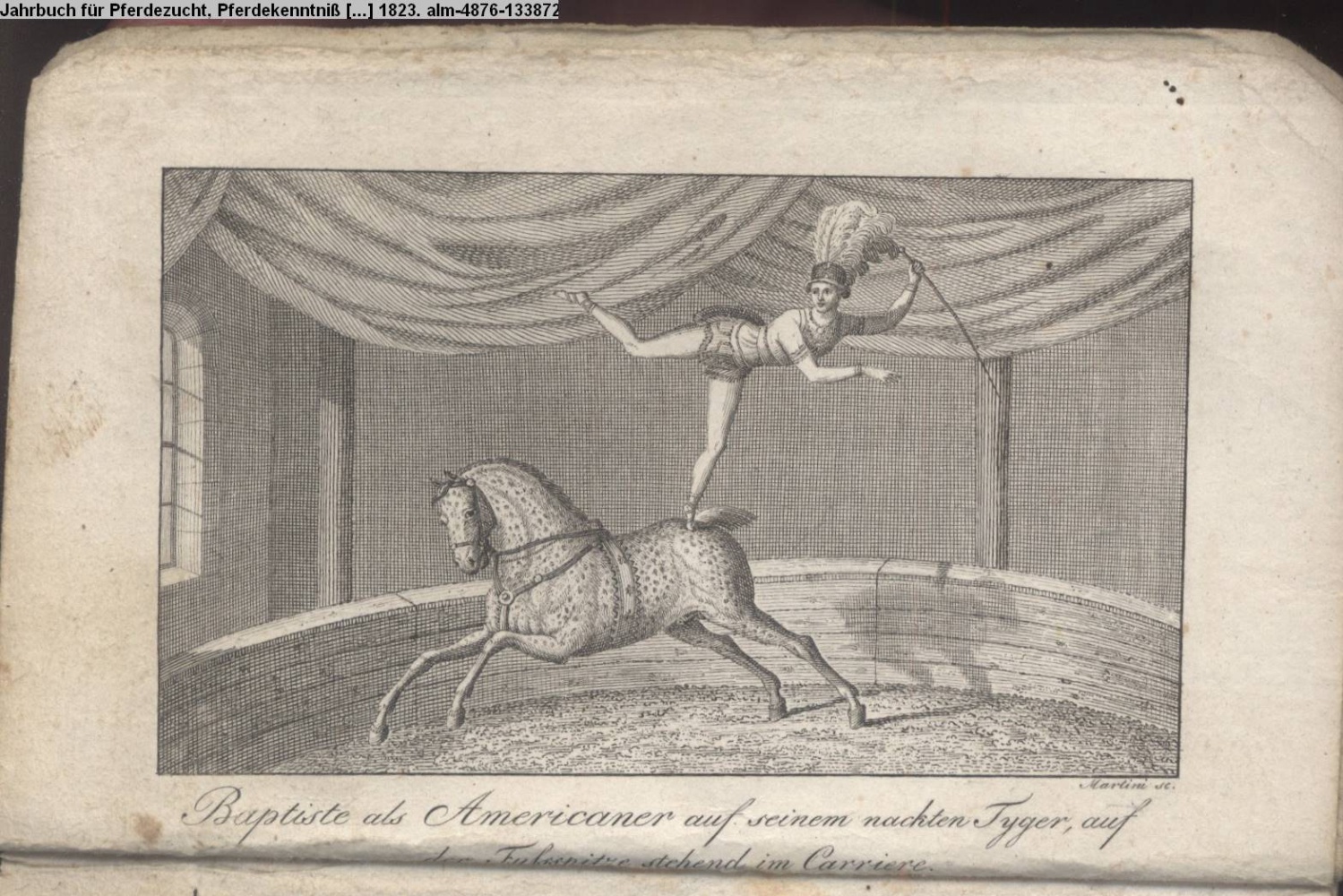 Illustration zu »Leben, Meinungen und Erfahrungen des Kunstreiters Baptist. Eine Biographie nebst Reflectionen über höhere Reitkunst und ihre Ausübung« INr 133874, Obj 4