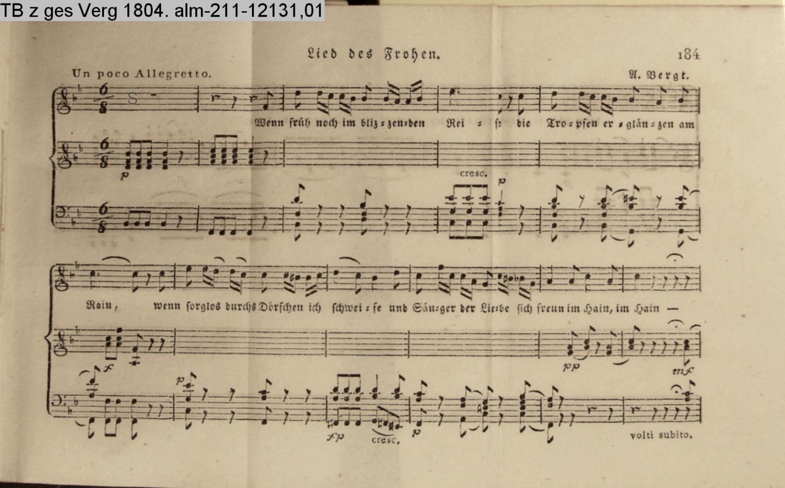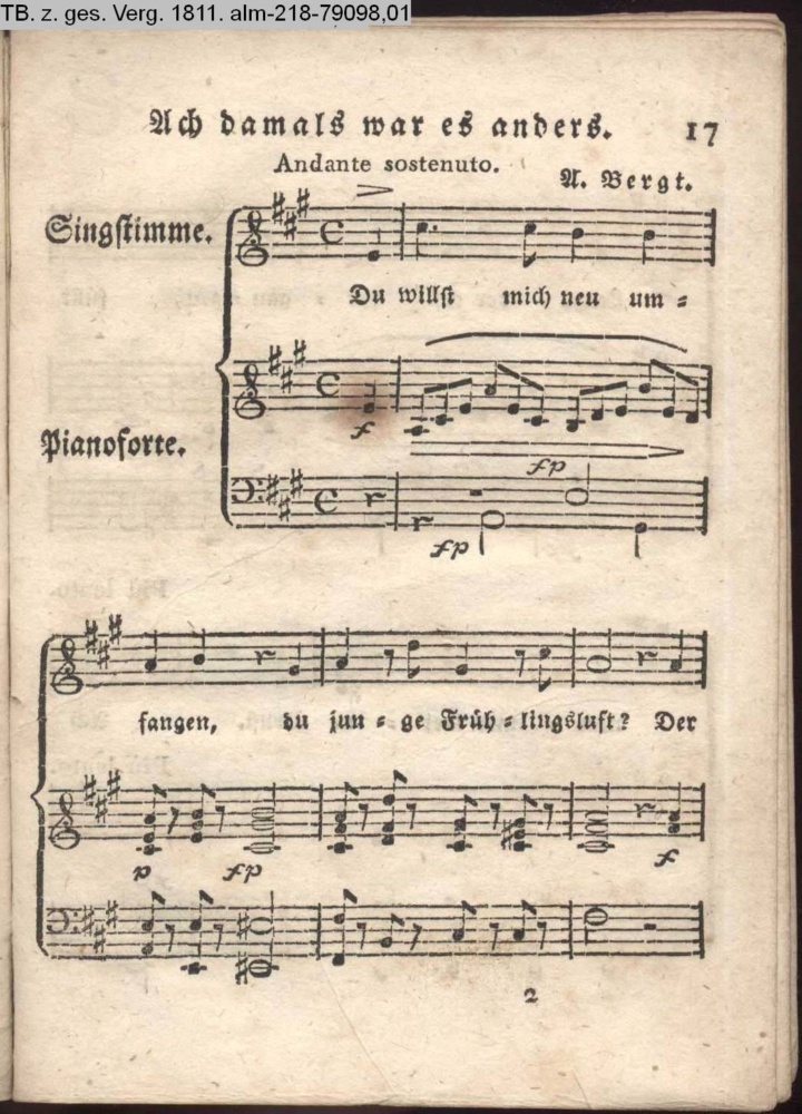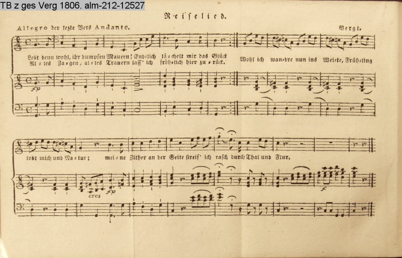 Anhang zu Beckers Taschenbuch 1813 enthaltend: Compositionen und Tänze, von Bergt, A. Harder, Methfeßel und Zelter (Sammlung INr 61716, Obj 168)