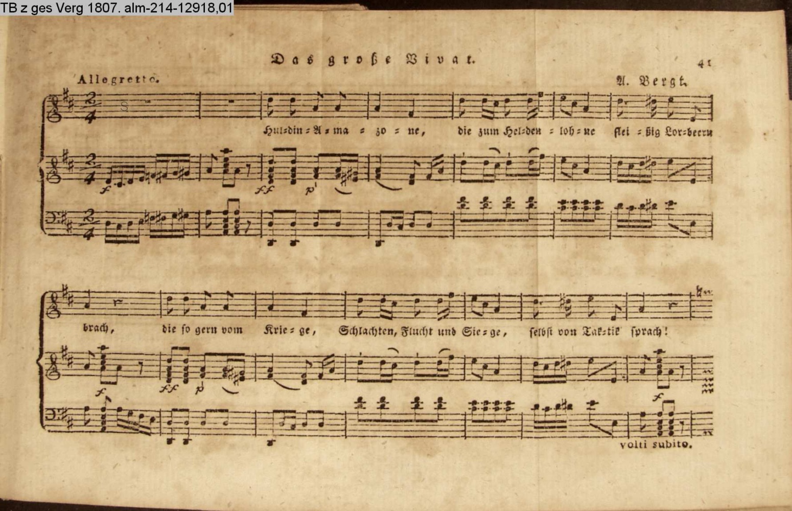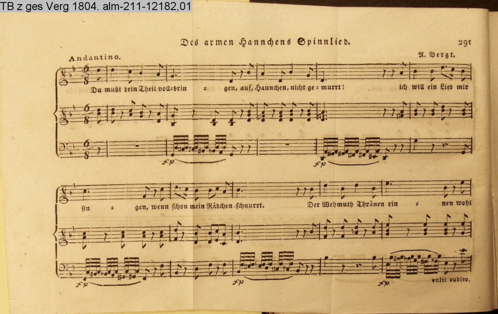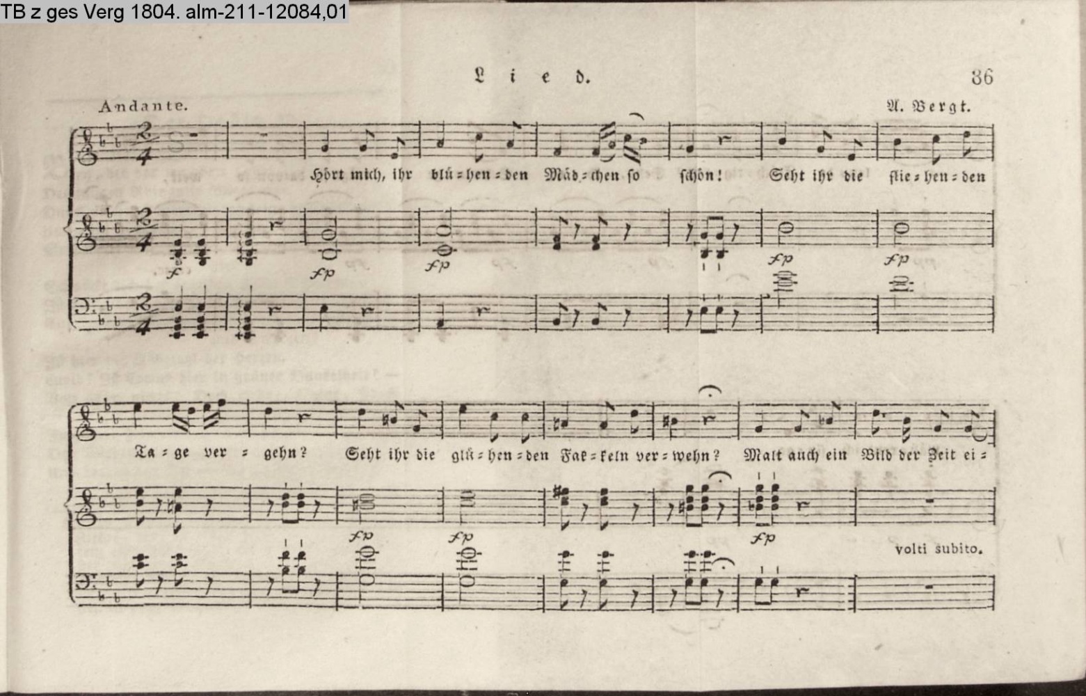 Anhang zu Beckers Taschenbuch 1813 enthaltend: Compositionen und Tänze, von Bergt, A. Harder, Methfeßel und Zelter (Sammlung INr 61716, Obj 168)