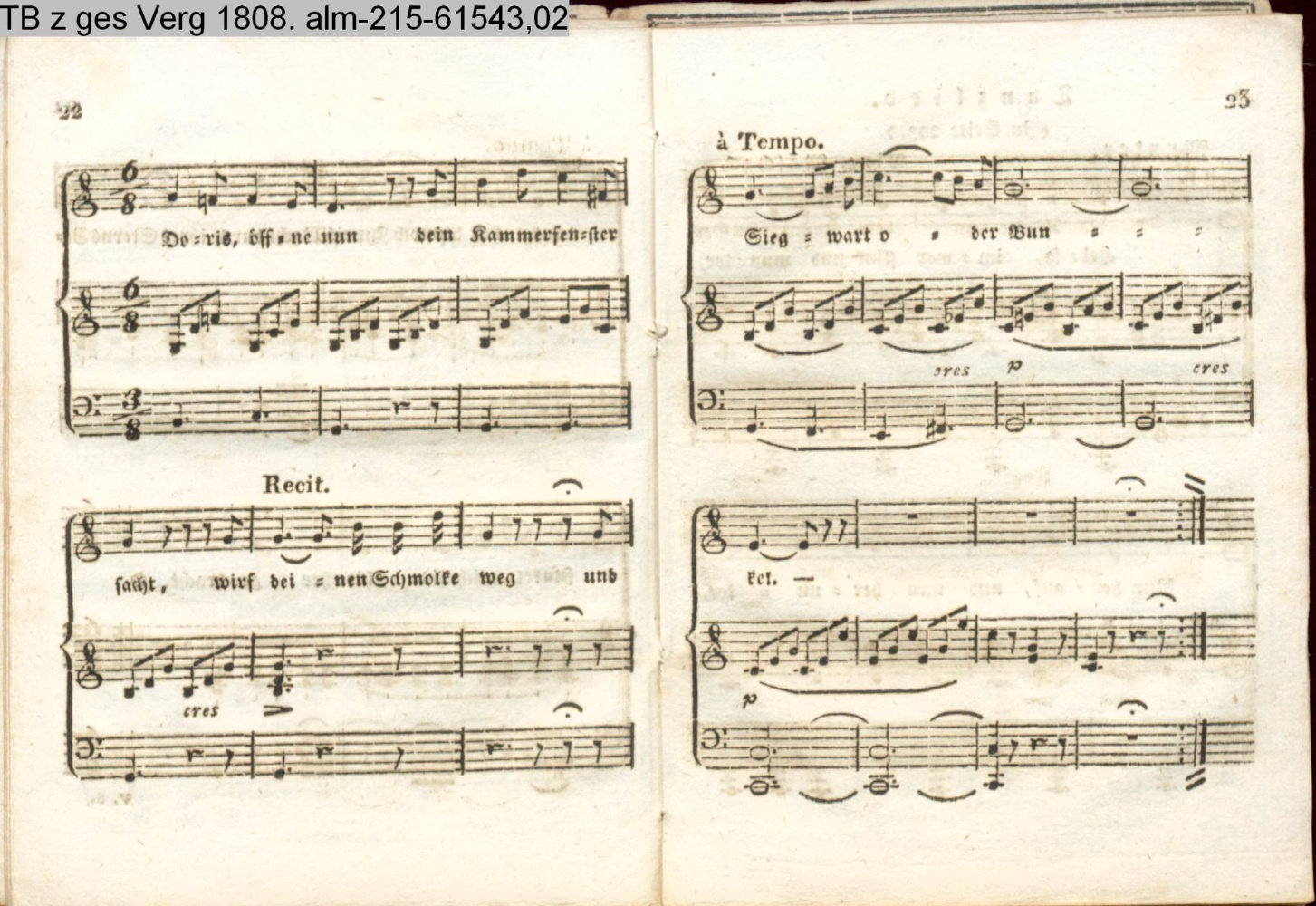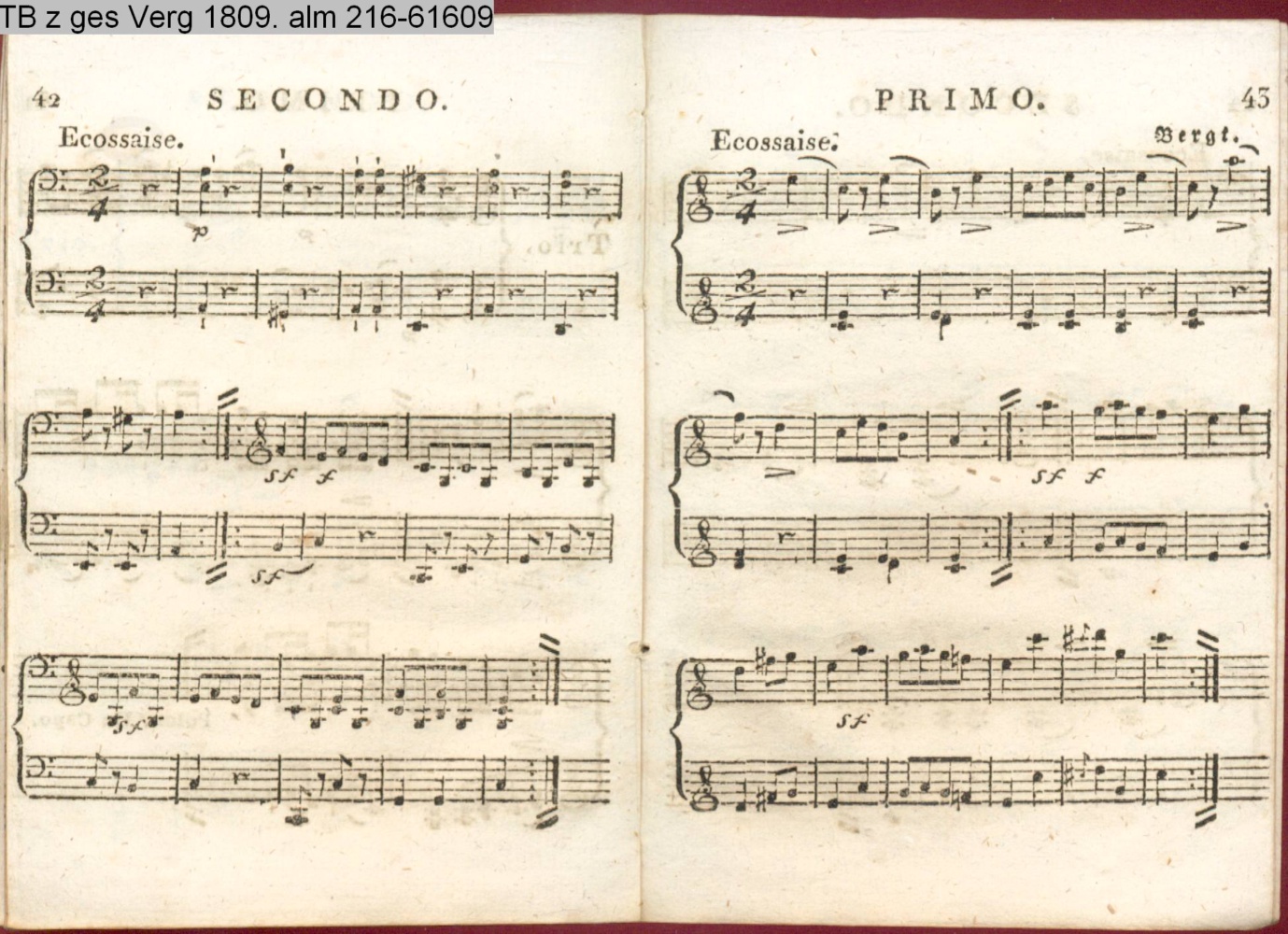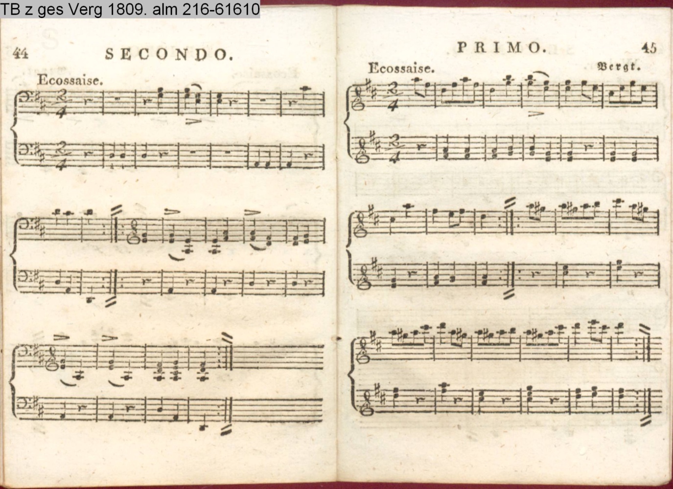 Anhang zu Beckers Taschenbuch 1809. enthaltend: Compositionen und Tänze, von Harder, Reichardt, Himmel und Bergt (Anhang INr 61598, Obj 163) (Photos 61601,01; 61601,02)
