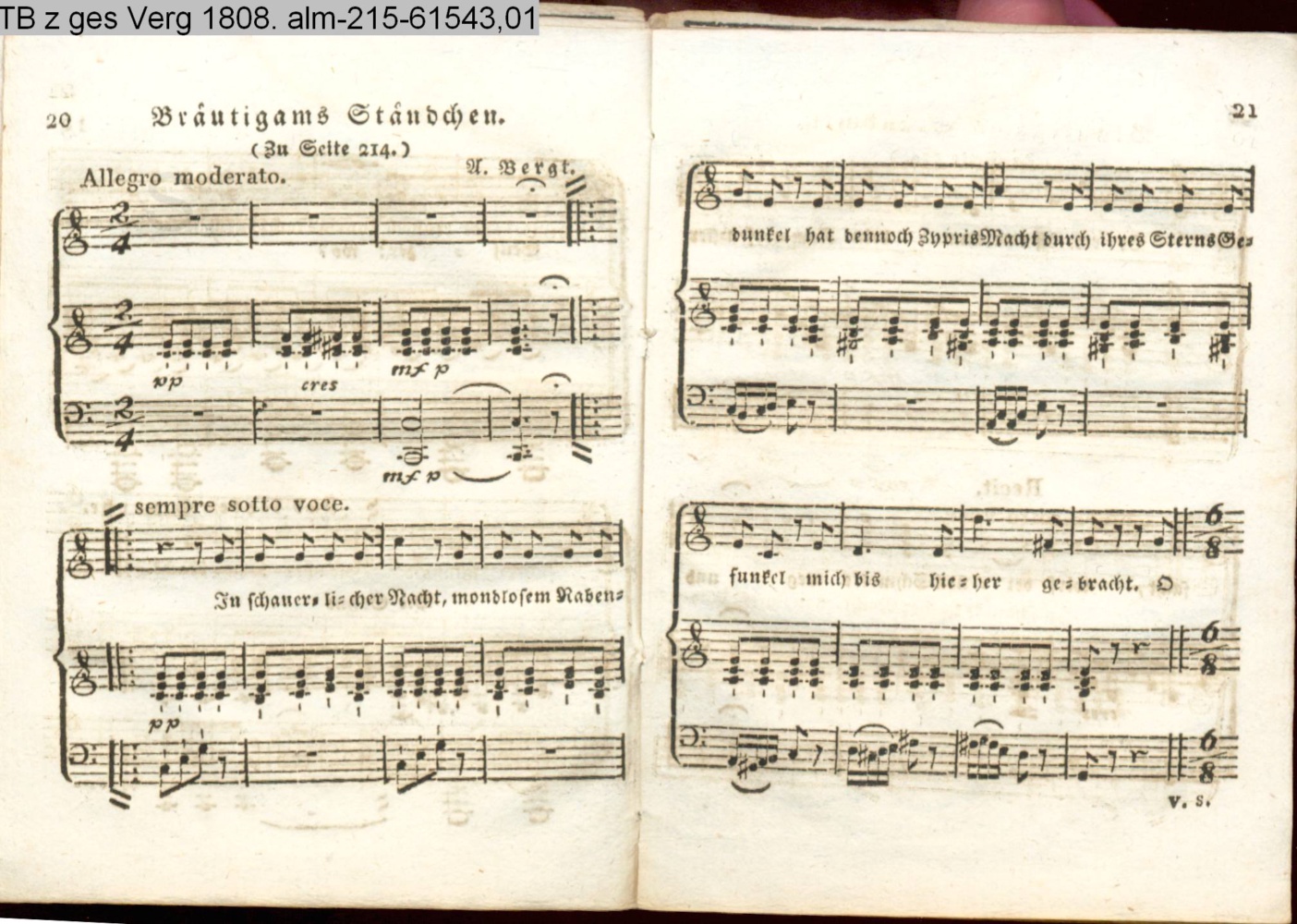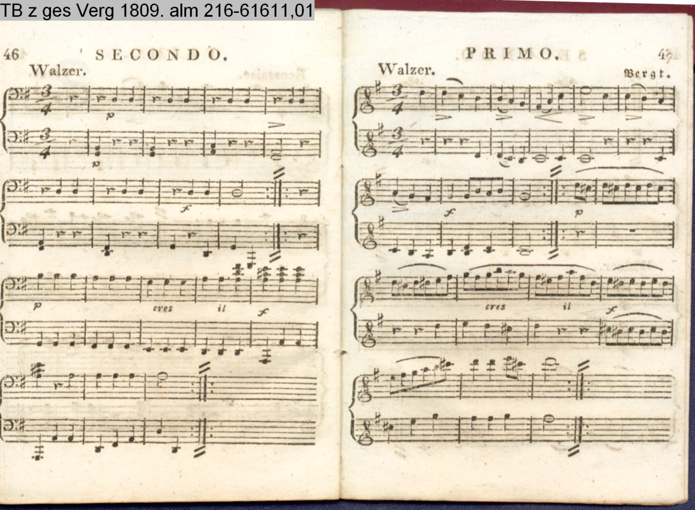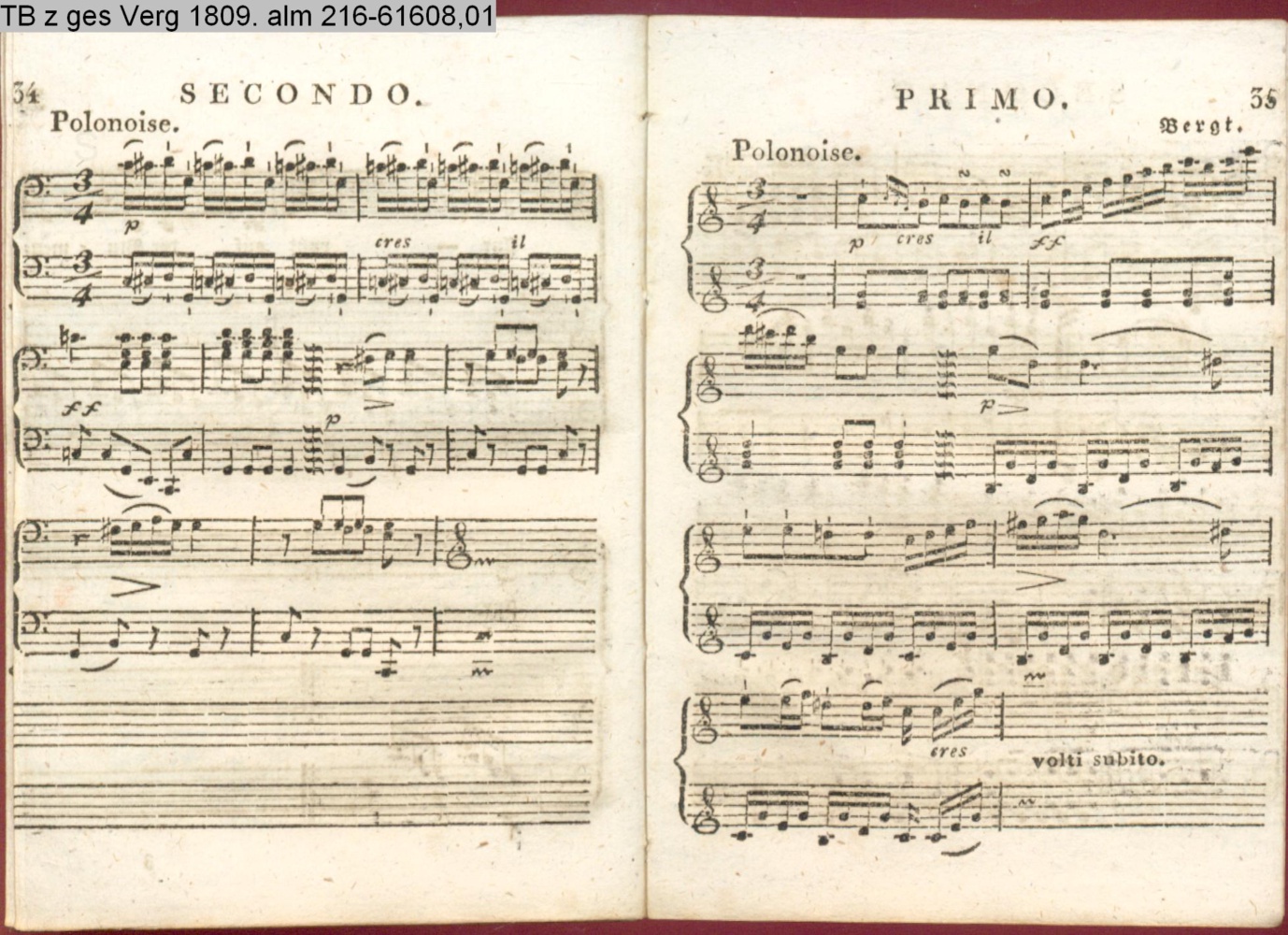 Anhang zu Beckers Taschenbuch 1809. enthaltend: Compositionen und Tänze, von Harder, Reichardt, Himmel und Bergt (Anhang INr 61598, Obj 163) (Photos 61601,01; 61601,02)