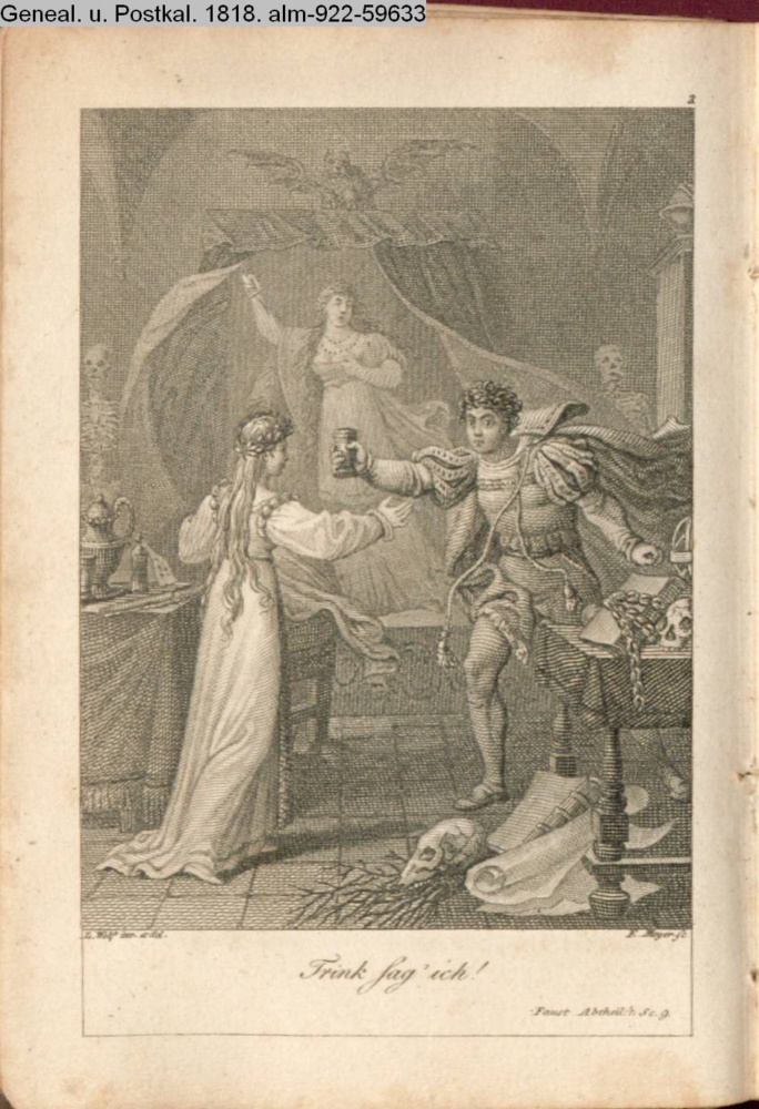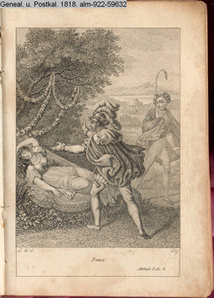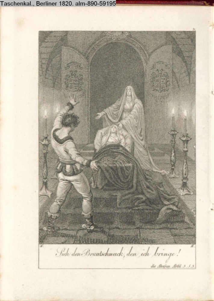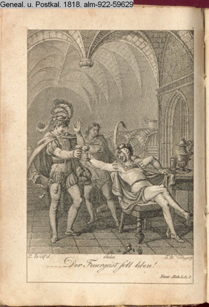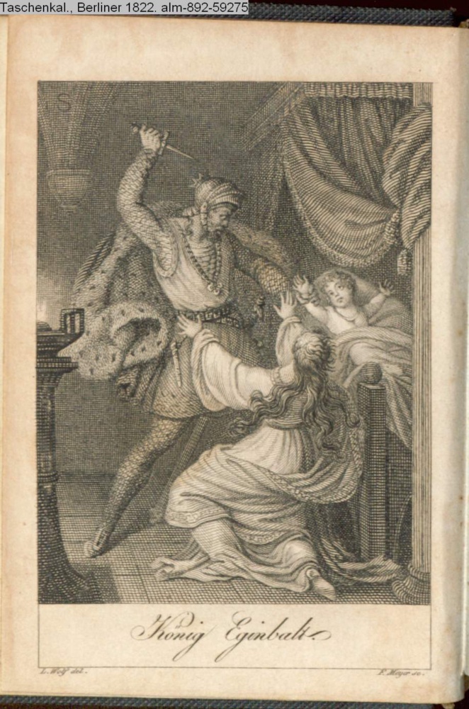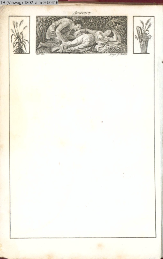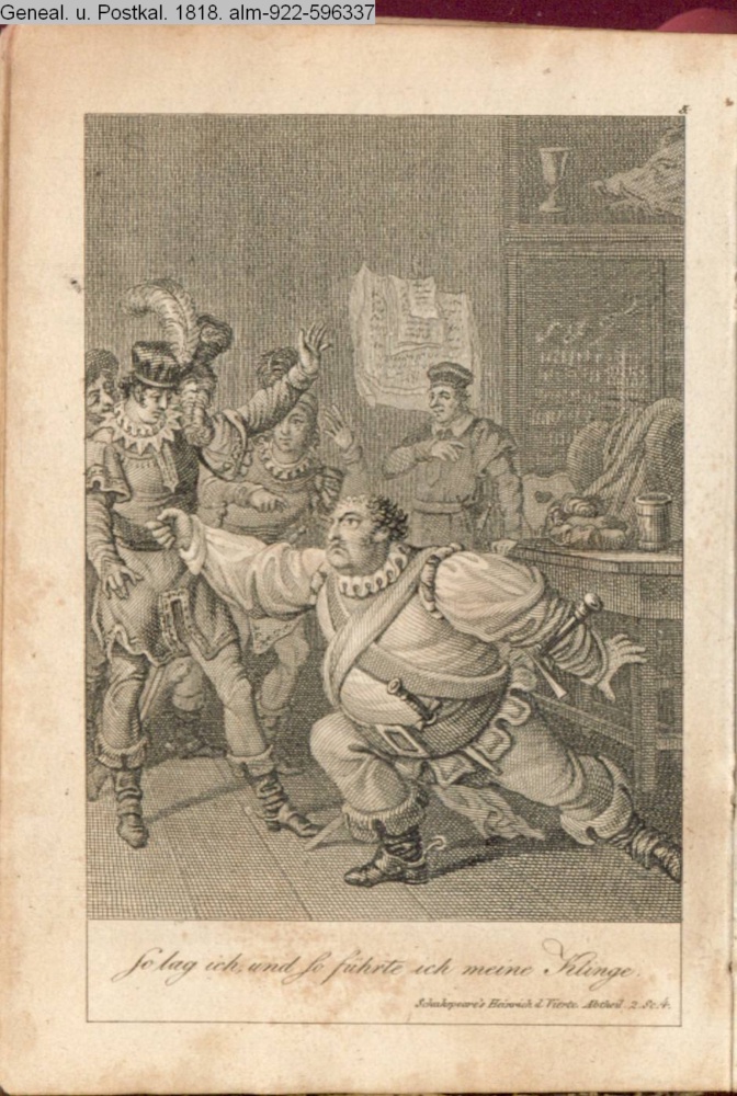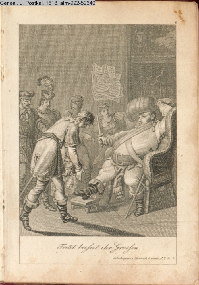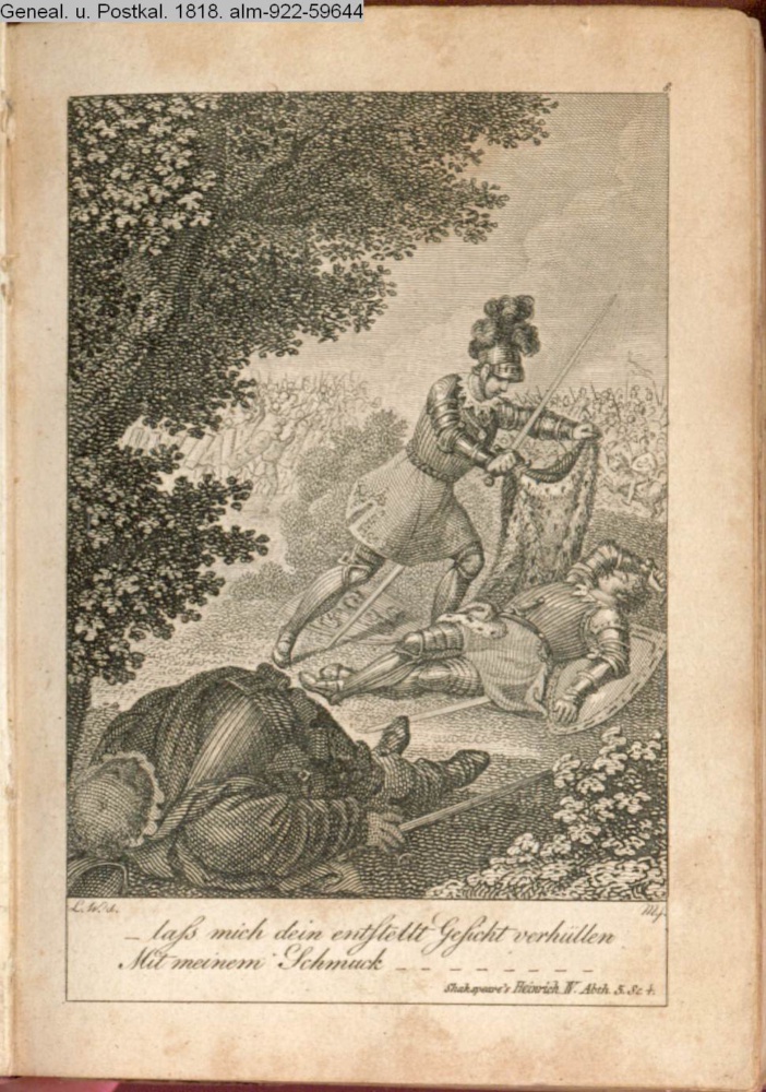 Graphik im Kalendarium August; paginiert 8. Illustration zu »Heinrich IV.« von W. Shakespeare s. Textbezug INr 59643, Obj 19