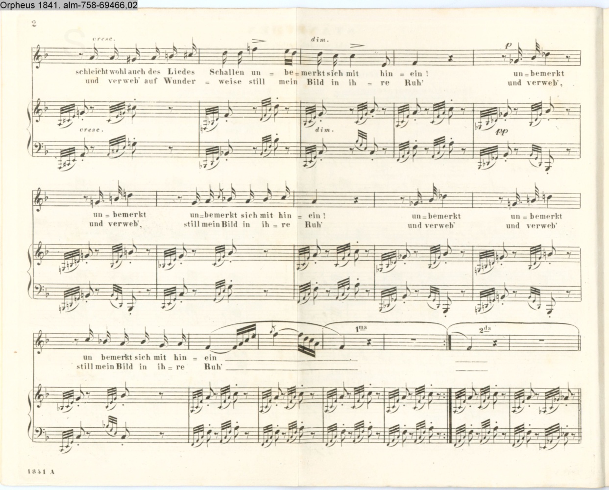 sep. Beilage: paginiert 1-4; Vertonung des Gedichts »Ständchen« von J. G. Seidl