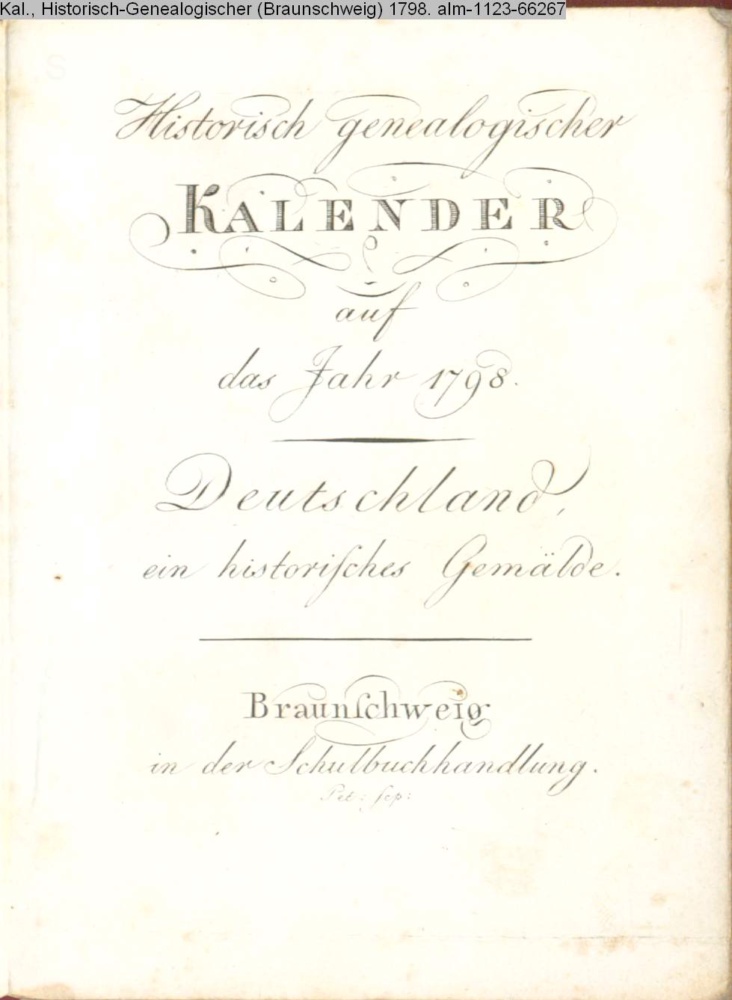 Kalender, Historisch-Genealogischer (Braunschweig) 1798