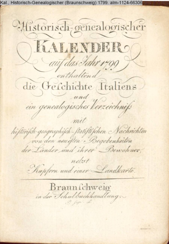 Kalender, Historisch-Genealogischer (Braunschweig) 1799
