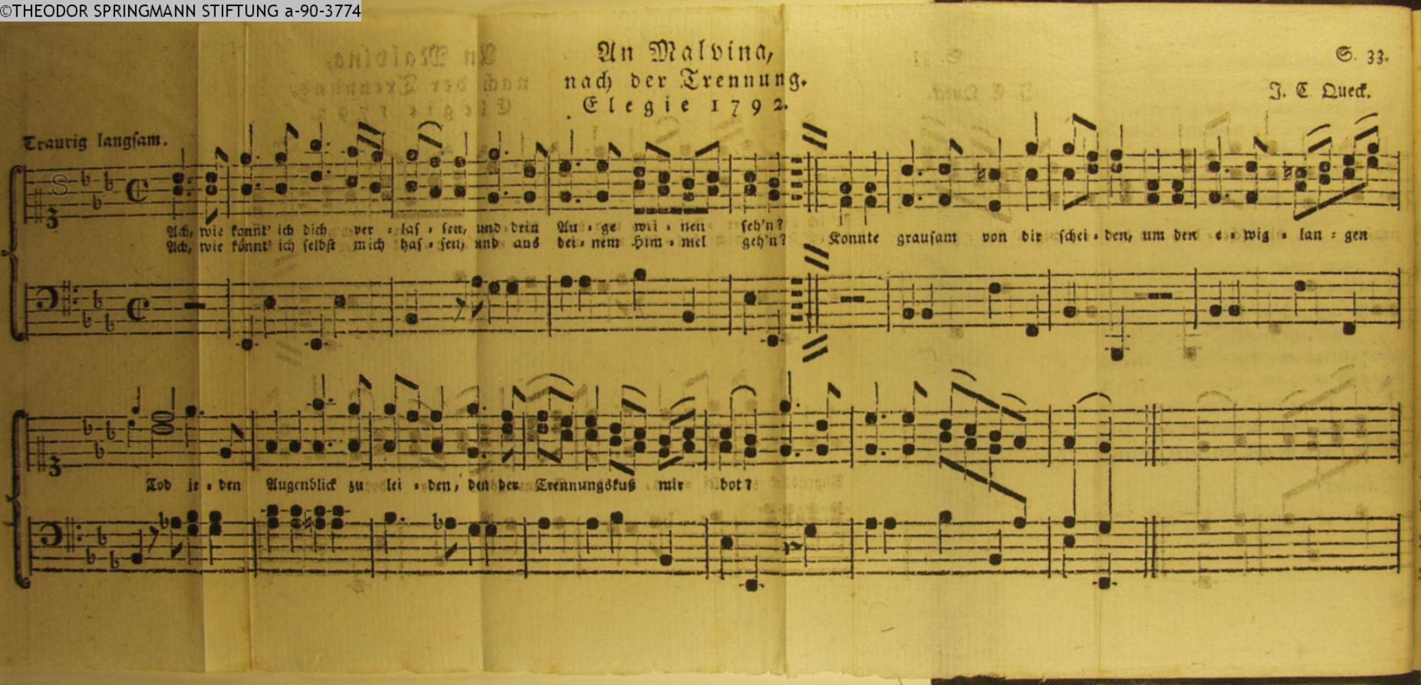 Vertonung des Gedichts »An Malvina, nach der Trennung. Elegie. 1792« von Karl Reinhard.