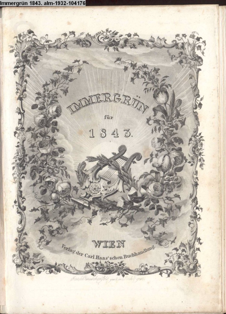 IMMERGRÜN / für / 1843. / WIEN / Verlag der Carl Haas'sche Buchhandlung