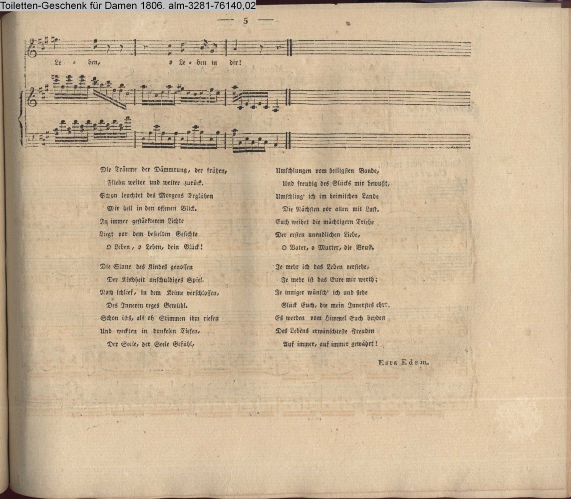 Vertonung des Gedichts »Die erwachsene Tochter« von Esra Edem d.i. Johann Friedrich de Marées