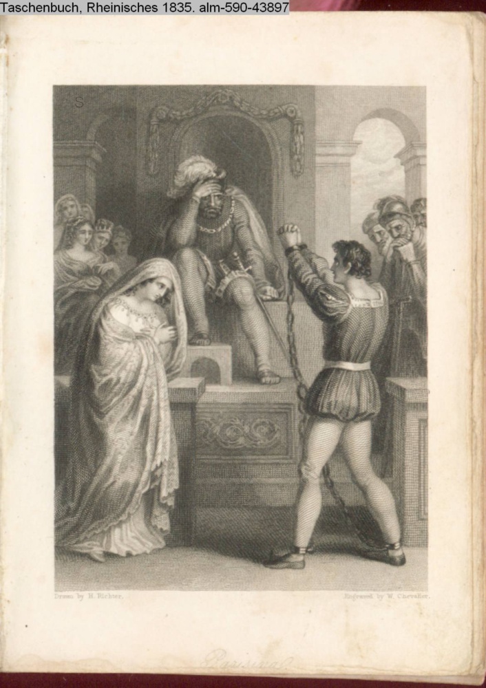 [unter der Graphik: Stich & Druck durch Kunst-Verlag in Carlsruhe]. Illustration zu »Die Braut von Abydos« von George Gordon Byron s. Textbezug INr 43859, Obj 5