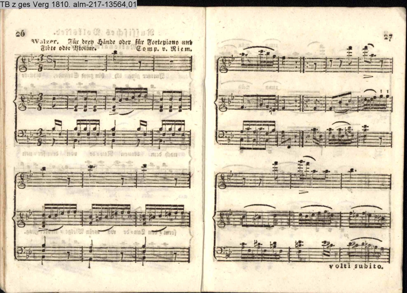 Walzer. Für drey Hände oder für Fortepiano und Flöte oder Violine (Sammlung