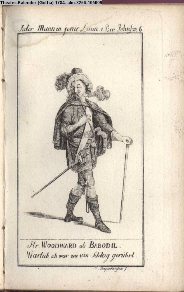 Jeder Mann in jener Laun v. Brn. Johnson. / Hr. WOODWARD als BABODIL. / Warlich ich war wie vom Schlag gerührt.