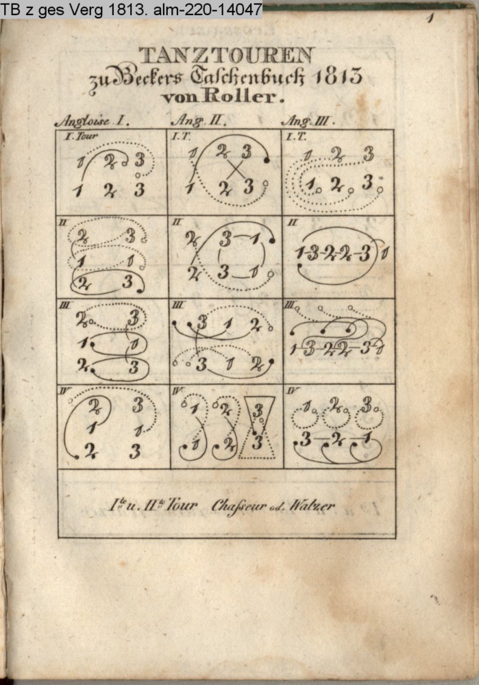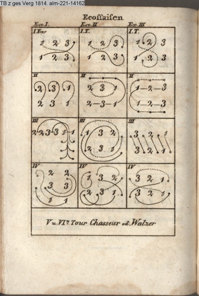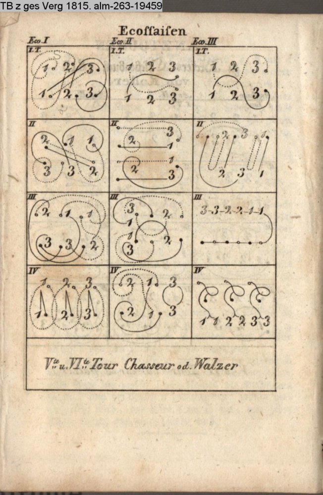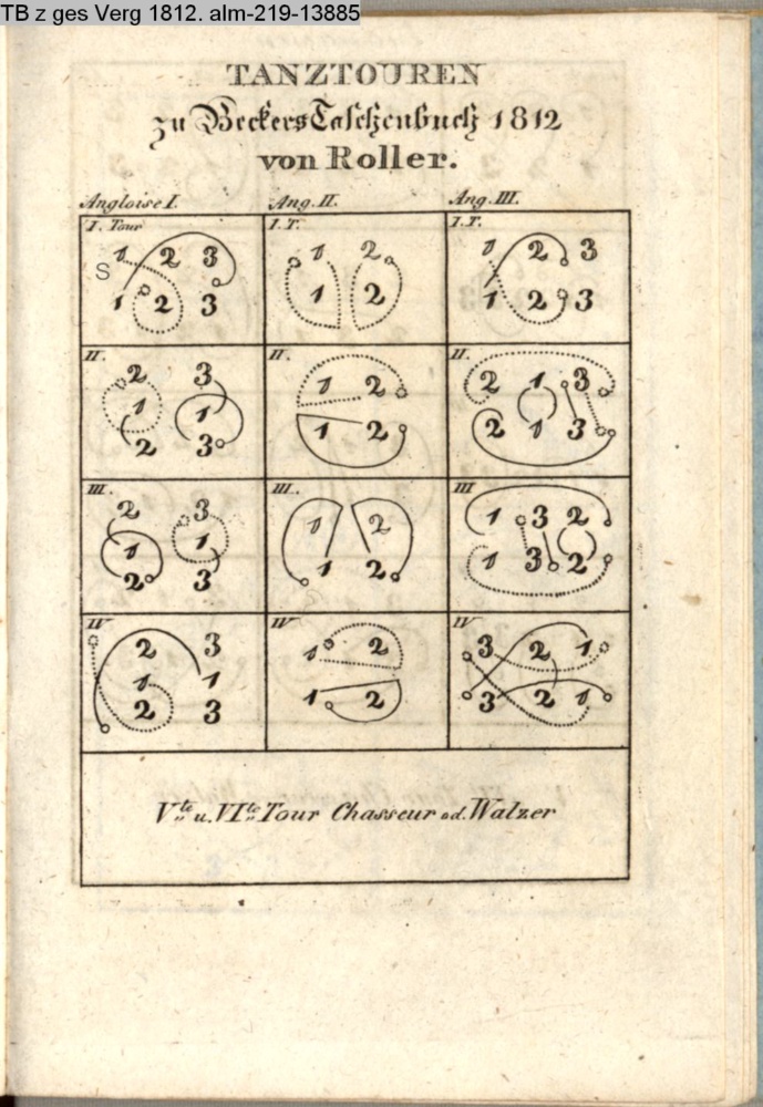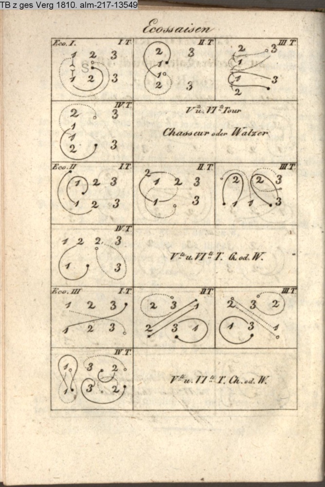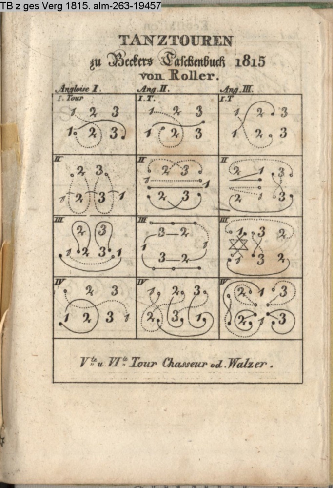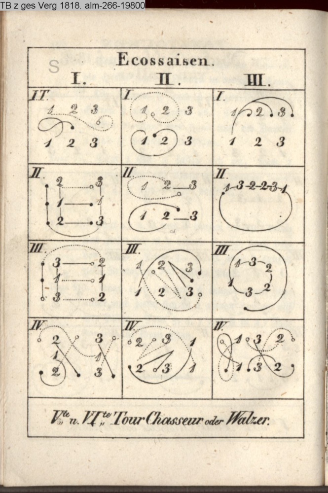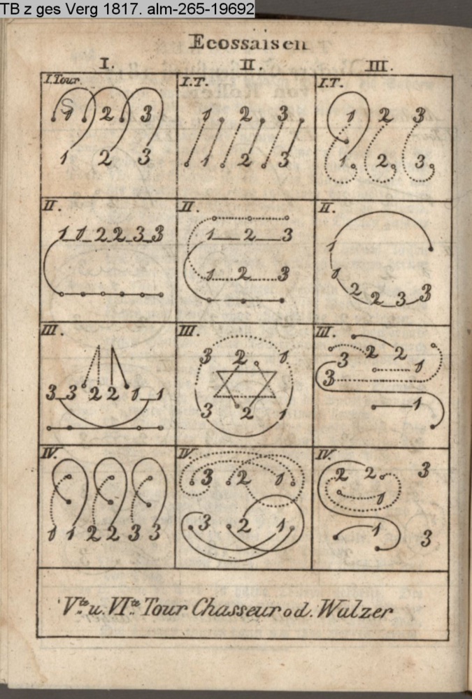 Zwei neue Tänze (Sammlung INr 76012, Obj 24) III. Tanzkunst (Sammlung INr 76008, Obj 20) s. graph. Tanzanleitung INr 76025, Obj 27