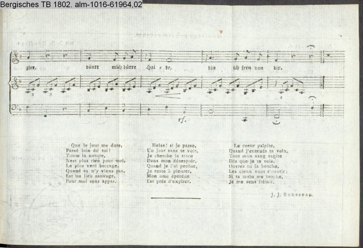 Vertonung des Gedichts Trichordion von J. J. Rousseau