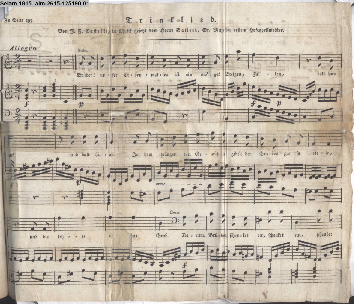 Vertonung des Gedichts »Trinklied« von I. V. F. Castelli INr 125224, Obj 78
