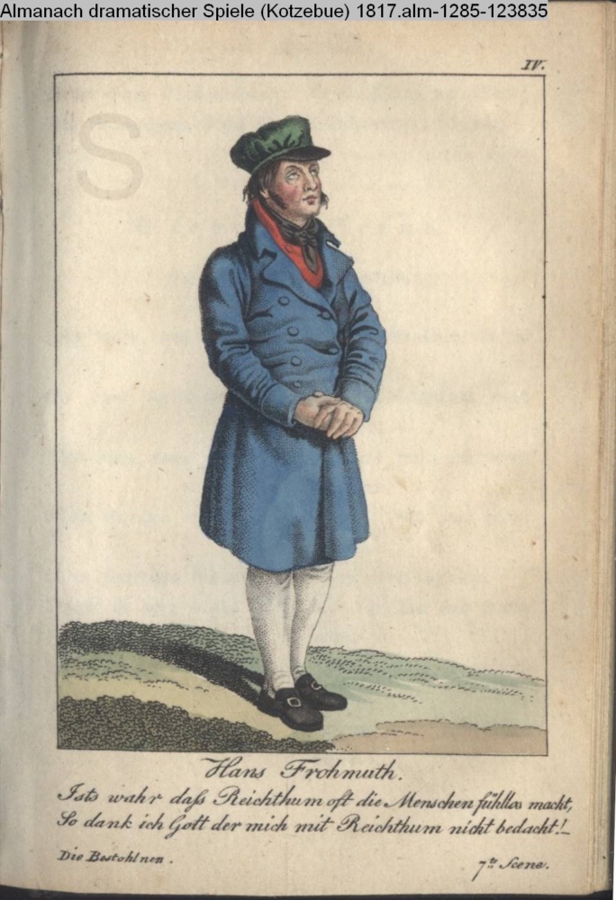IV. / Verwalter. / Ich bin kein reicher Mann, / Dock glücklich, daß ich mich mit jedem messen kann. / Das Erndtefest. 8r Auftritt