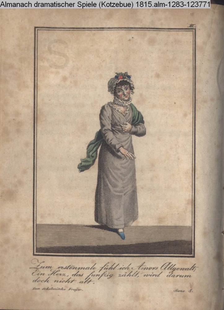 III. / Henriette Winter. / Ach!, wie geschmackvoll gewählt! Wie sinnreich zusam- / mengefügt. / Der Allgefällige. 1r Aufzug, 7te Scene #