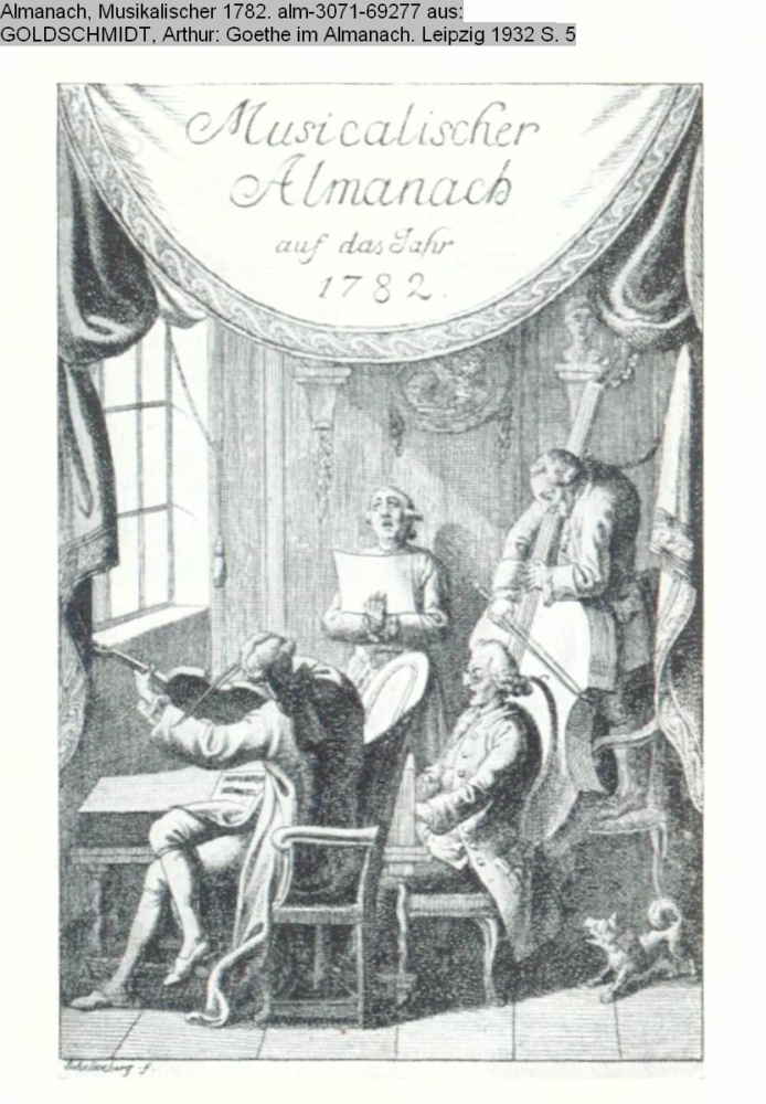 Titelgraphik s. Textbezug 69280, Obj 5 §1§ Titelgraphik fehlt. Photo aus: GOLDSCHMIDT, Arthur: Goethe im Almanach. Leipzig 1932 S. 5