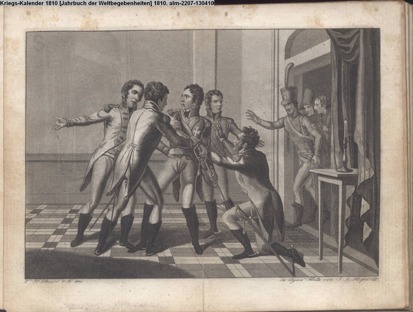 kol. Illustration zu »Anekdoten zu Friedrich der Sechste, König von Dänemark und Norwegen, Anekdote INr 130413, Obj 35 « lt. G-Verz: Friedrich VI., König von Dänemark belohnt den tapfern Seekapitain Krieger