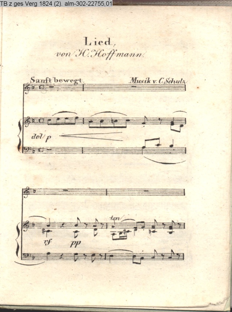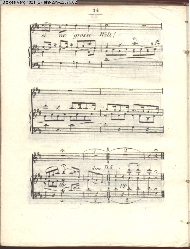 Musik-Beilage zu dem Taschenbuch zum geselligen Vergnügen 1822 (Sammlung INr 22484, Obj 107) (Photos 22486,01-22486,03)