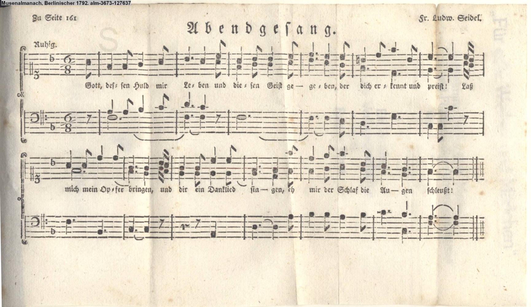 auszufaltende Musikbeigabe. Vertonung des Gedichts »Abendgesang« von J. F. Seidel