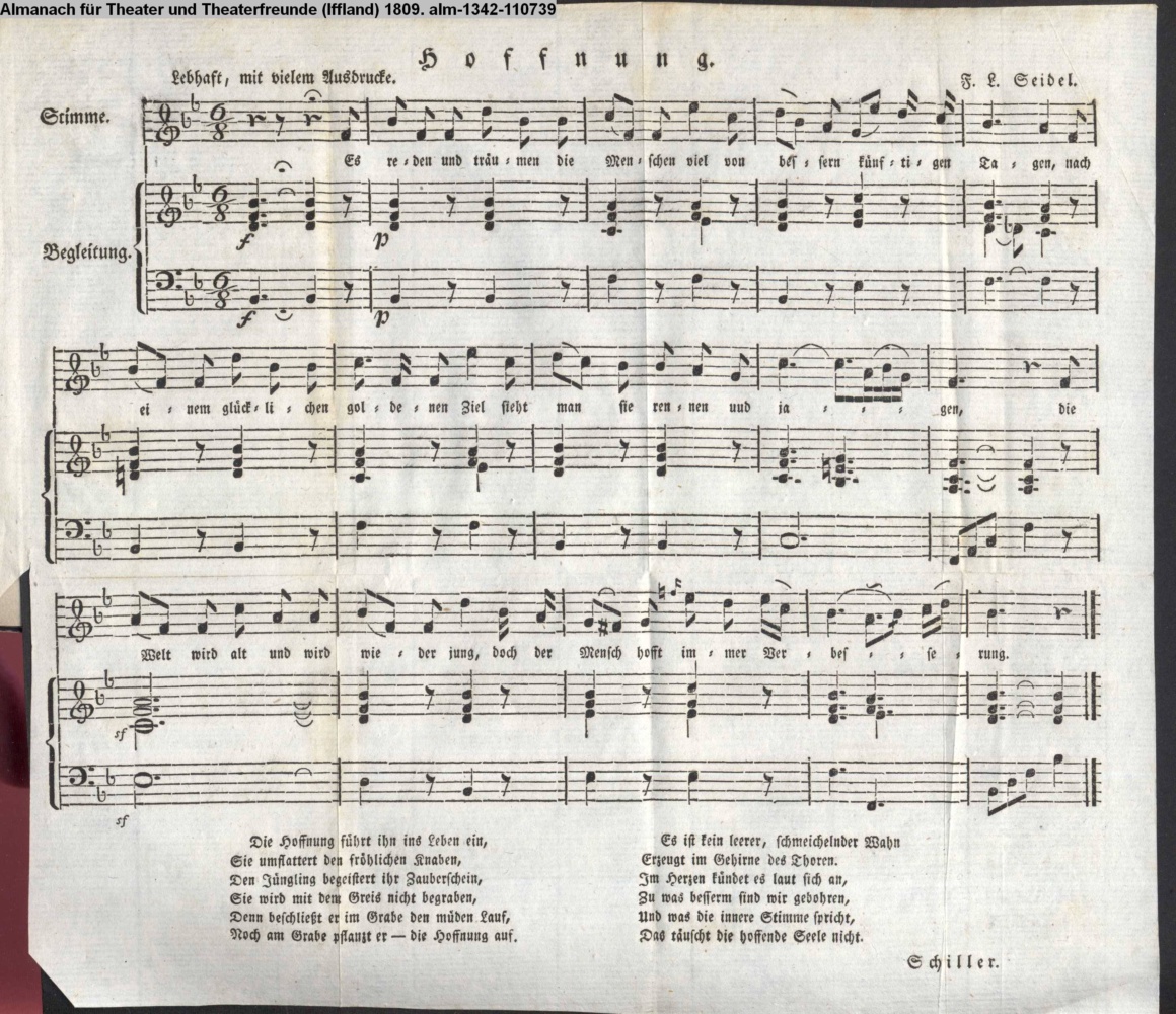auszufaltende Vertonung des Gedichts »Hoffnung« von Fr. Schiller