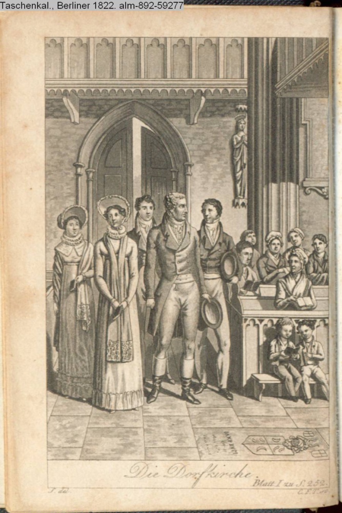 Graphik im Kalendarium Dezember. Illustration zu »Die Dorfkirche« von S. H. Spiker INr 59289, Obj 26 aus »Bruchstücke aus Gottfrieds Crayon's Skizzenbuche« (Sammlung INr 59287, Obj 24)