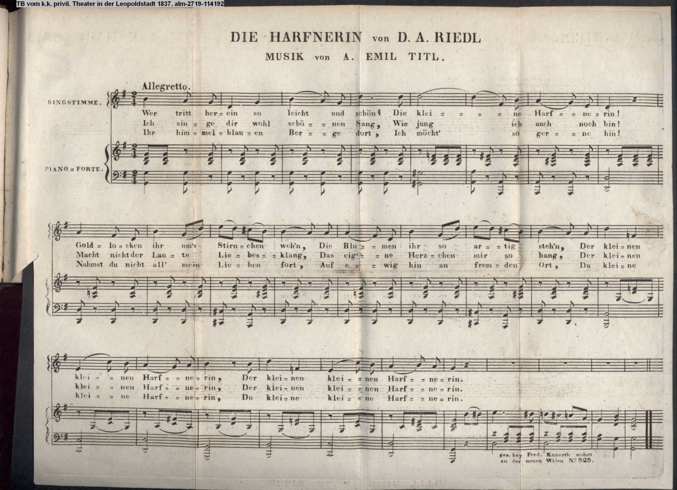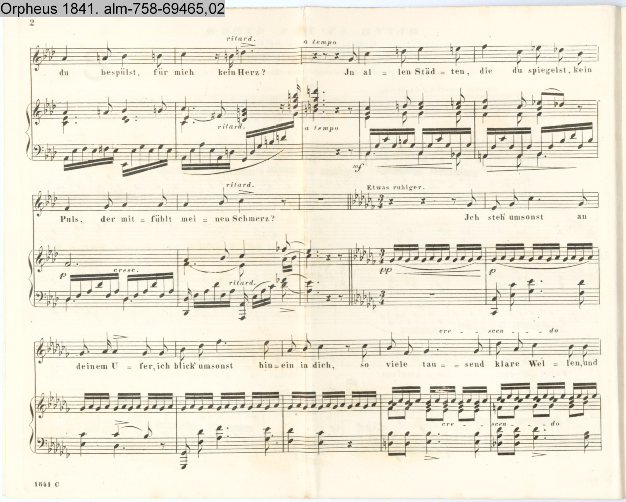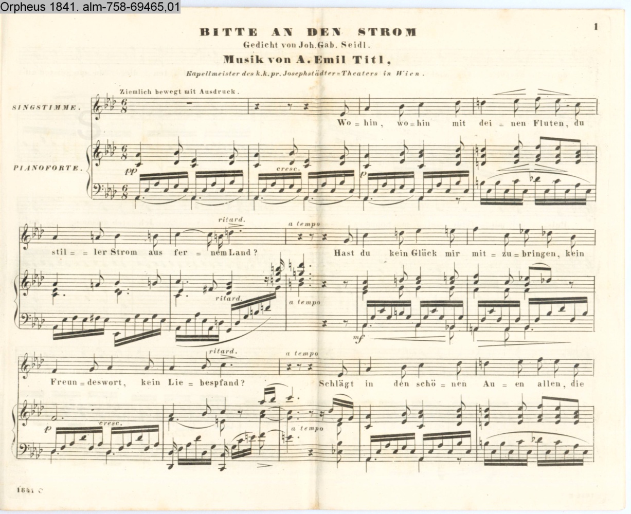 sep. Beilage: paginiert 1-4; Vertonung des Gedichts »Bitte an den Strom« von J. G. Seidl
