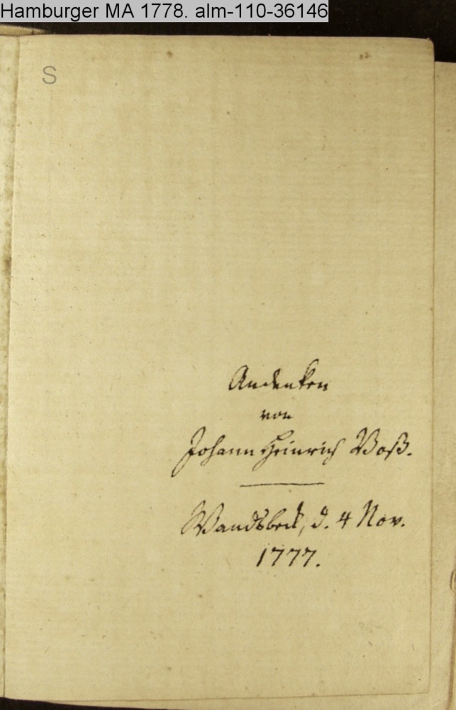# Anm. am Objekt mit Hinweis auf »Elegie an zwei Schwestern« von J. H. Voß in: Musenalmanach (Göttinger) 1774