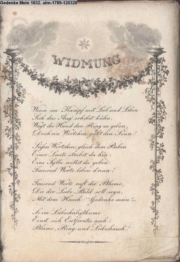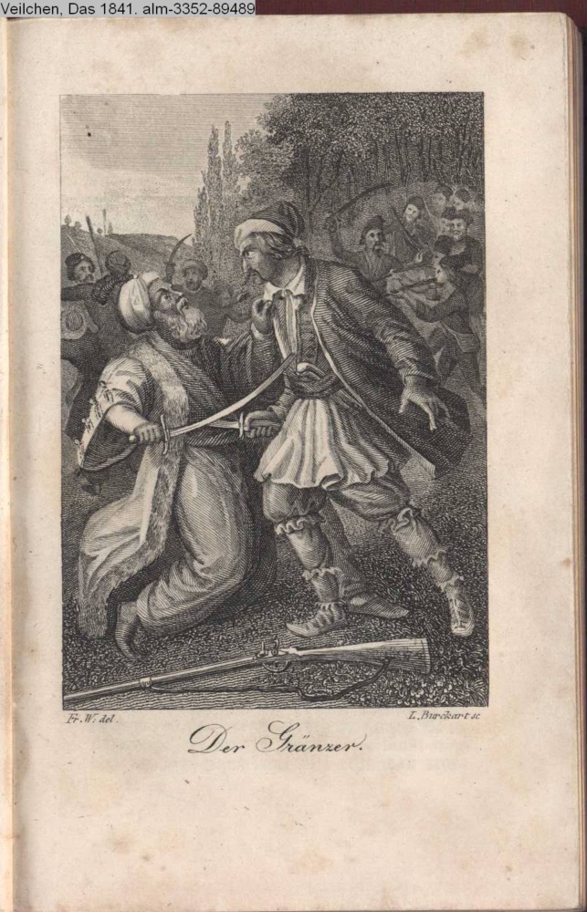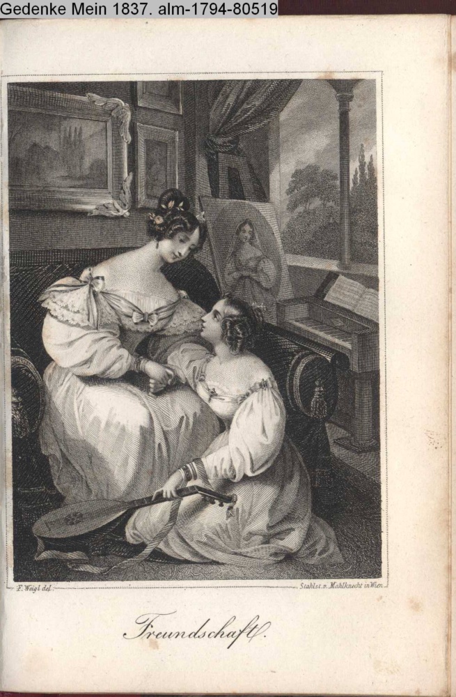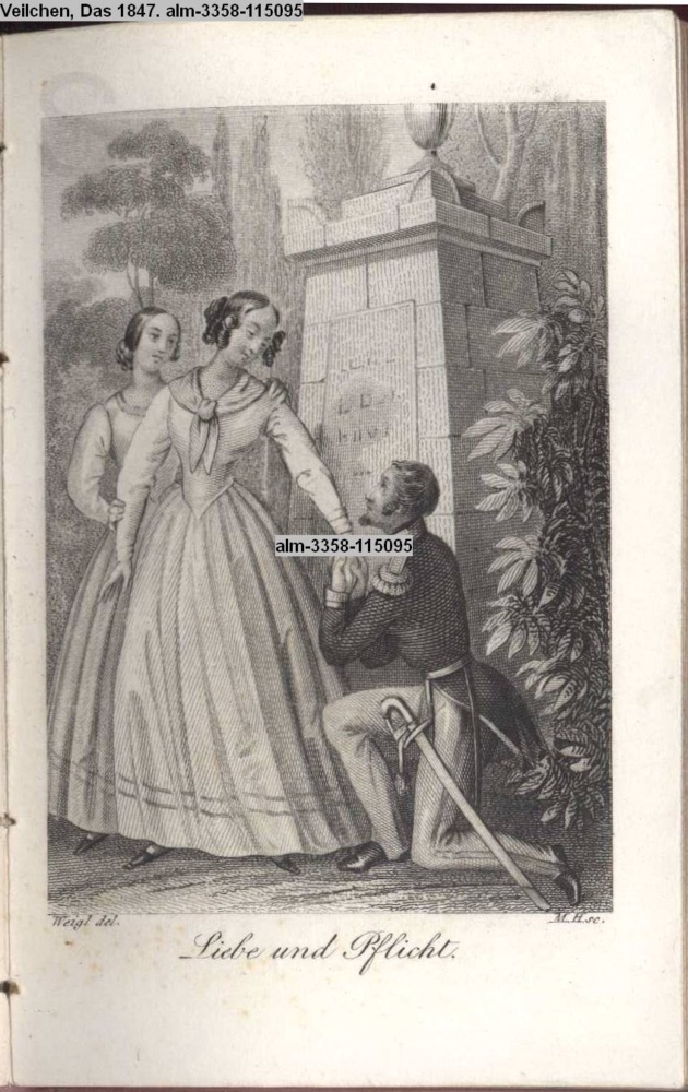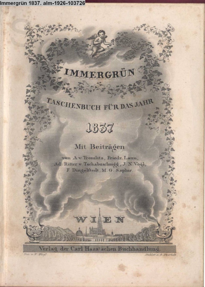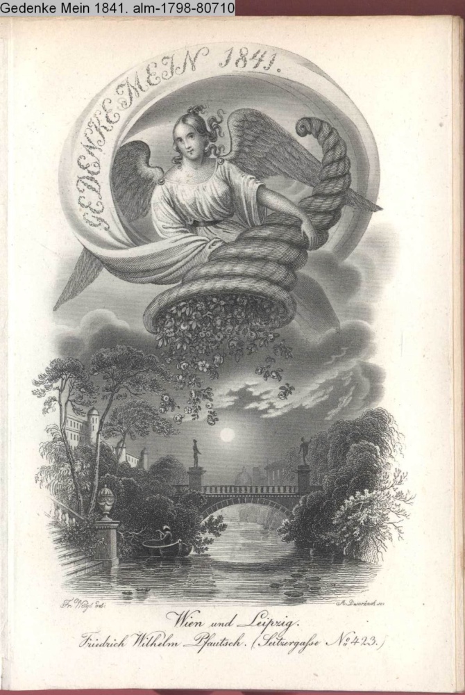 Die Graphik aus der Titelauflage: Taschenbuch für das Jahr 1842 Wien, bei Franz Riedl's sel. Wittwe & Sohn, k.k. Hofbuchbinder, Schottenhof No. 196