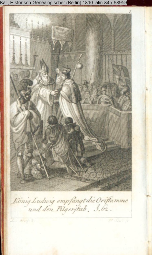 König Ludwig empfängt die Oriflamme / und den Pilgerstab. S. 62.
