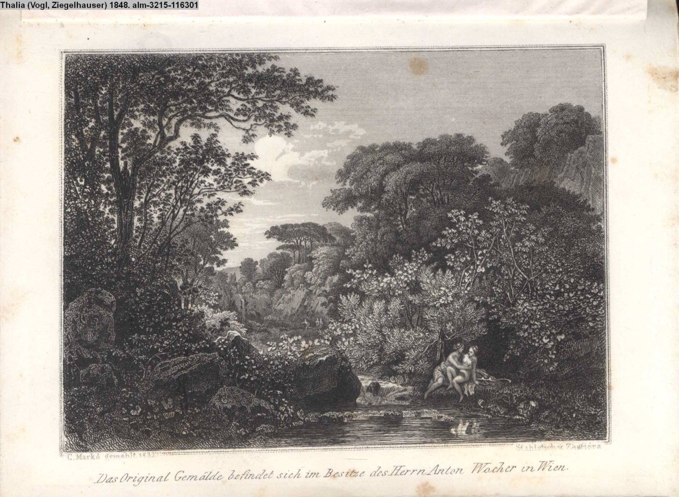 unter der Graphik: Das Originalgemälde befindet sich im Besítze des Herrn Anton Wocher in Wien